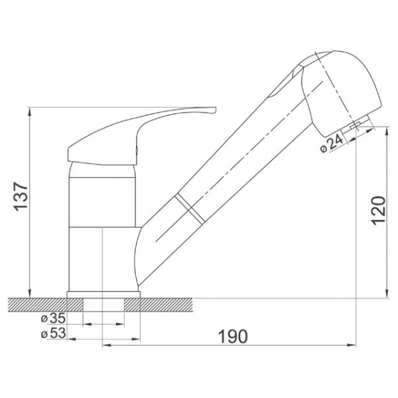 • obrotowa wylewka z wyciąganą rączką natrysku