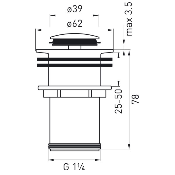 FERRO Korek zamykany klik klak do umywalek bez przelewu CHROM
