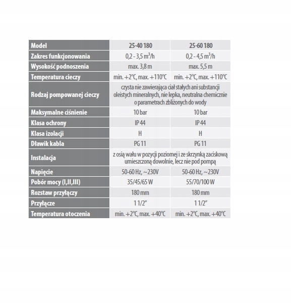 Pompa obiegowa do instalacji grzewczych 25-60-180