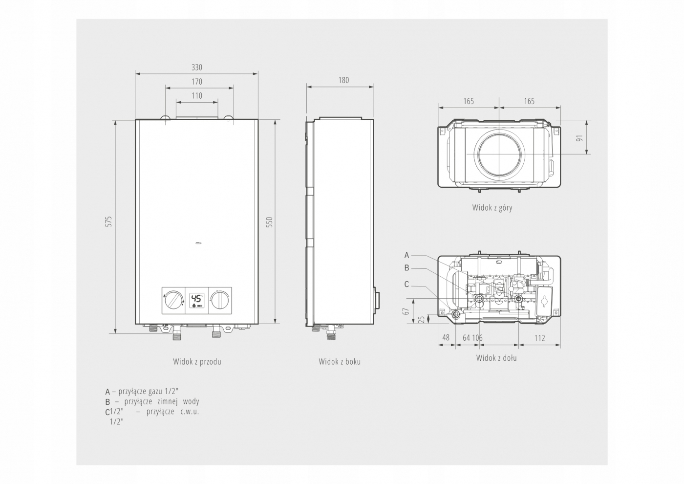 Wymiary Szer. x Wys.x Gł. mm 330 x 550 x 180