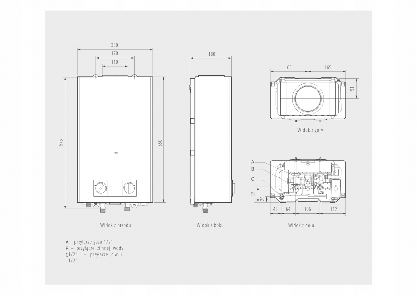 Wymiary Szer. x Wys.x Gł. mm 330 x 550 x 180