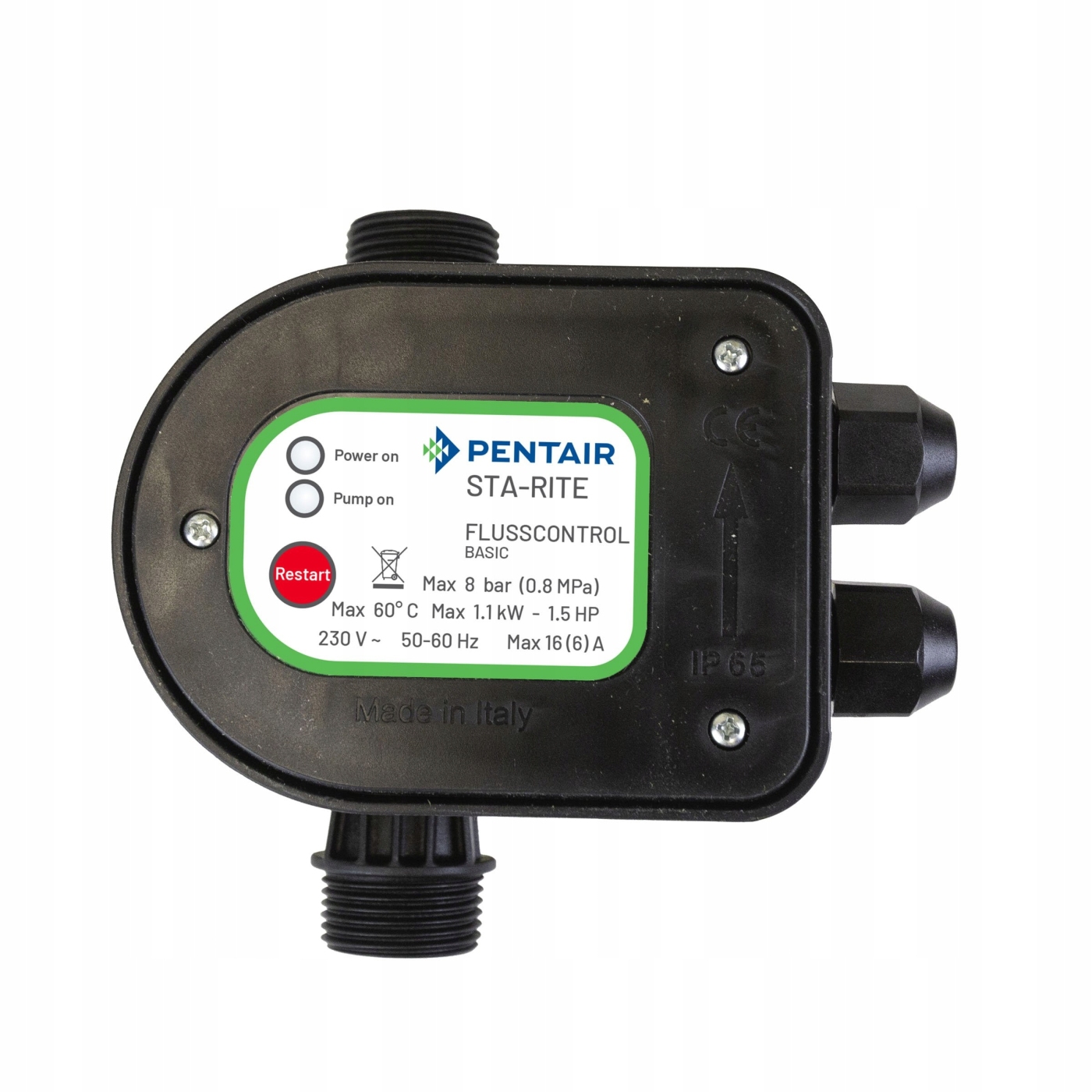 System FLUSSCONTROL BASIC kontroluje rozruch i zatrzymywanie pompy. Jeśli pobór wody jest przerwany to system elektroniczny zatrzymuje pracę pompy dla jej ochrony przed pracą na sucho. Po ustaniu przyczyn zatrzymania wystarczy nacisnąć czerwony przycisk Restart dla przełączenia do trybu normalnej pracy.