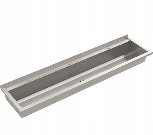 do montażu ściennego. Wykonana ze stali szlachetnej chromowo-niklowej o wykończeniu matowym. Grubość materiału umywalki 0,8 mm, ścianek bocznych 1,2 mm. Spawana bezspoinowo. Ścianki boczne ze zintegrowanymi wspornikami ściennymi. Półka armaturowa obniżona 80 mm, bez otworu na armaturę i bez przelewu. Listwa tylna 30 mm. Centralny odpływ, zawór sitkowy G 1 1/2B. W zestawie materiały montażowe.