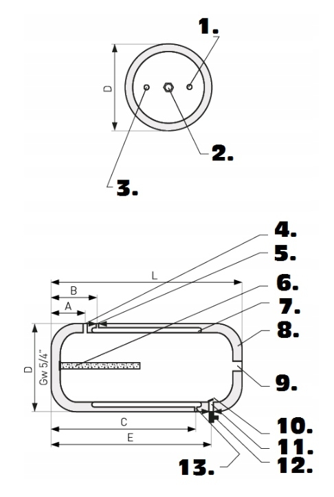 Źródłem ciepła w wymienniku może być dowolny kocioł c.o., opcjonalnie także grzałka elektryczna. Komplet elektryczny GE z grzałką i sterownikiem zapewnia komfort użytkowania ciepłej wody niezależnie od pracy kotła c.o. Instalowany jest w dennicy, co pozwala na łatwy montaż w dowolnym momencie.