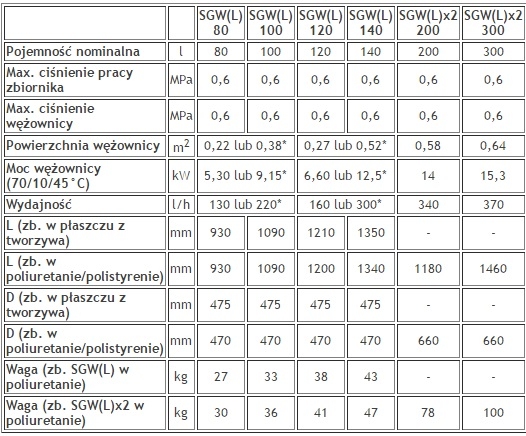 Wymienniki wyposażone w pojedynczą lub podwójna wężownicę typu "U", mufę cyrkulacyjną i mufę pod czujkę z kotła centralnego ogrzewania. Ocieplone są pianką poliuretanową lub polistyrenową i współpracują ze wszystkimi typami kotłów - olejowymi, gazowymi, węglowymi itd. Długą żywotność urządzeń zapewnia emalia ceramiczna EXTRA GLASS, która stanowi zabezpieczenie przed korozją.