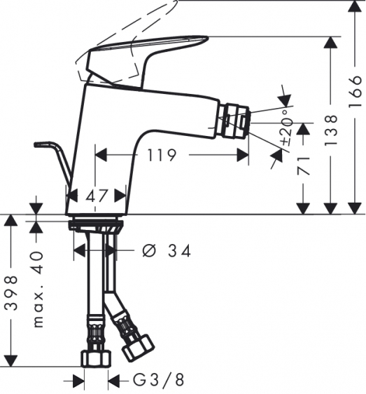 HANSGROHE LOGIS bateria bidetowa z korkiem CHROM