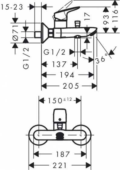 HANSGROHE LOGIS bateria wannowa ścienna CHROM