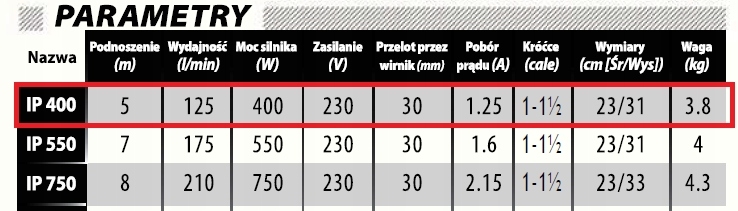 IP Seria zatapialnych pomp plastikowych przeznaczonych do pompowania wody czystej i lekko zanieczyszczonej. W pompach zastosowano króciec tłoczny, do którego można dopasować rożne średnice węża tłocznego w zależności od potrzeb użytkownika. Niewielkie wymiary i waga sprawiają że pompy są niezwykle łatwe w użytkowaniu i konserwacji. Pompy wyposażone zostały w wyłączniki pływakowe automatycznie sterujące pracą pomp.Wszystkie pompy posiadają zabezpieczenie termiczne montowane w uzwojeniu silnika.
