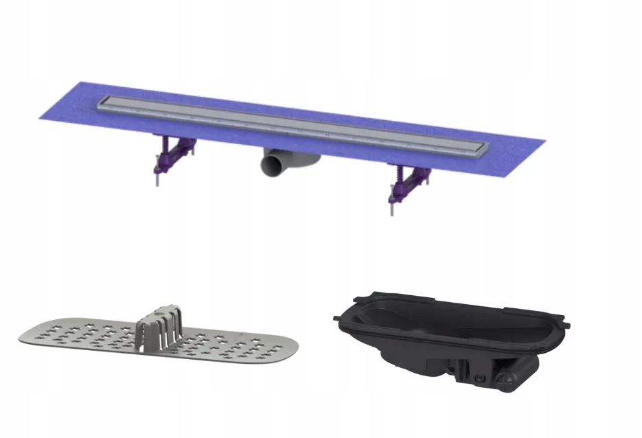 Odpływ liniowy w komplecie z gotowymi otworami na wodę przesiąkającą i syfonem Multistop.