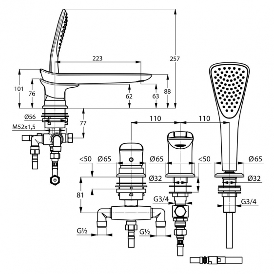 KLUDI AMBIENTA bateria 3-otworowa wannowa