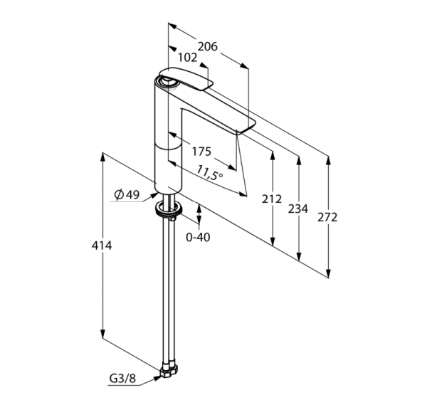 • wysokość wylewki 212 mm