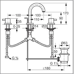 KLUDI BOZZ bateria umywalkowa 3-OTWOROWA