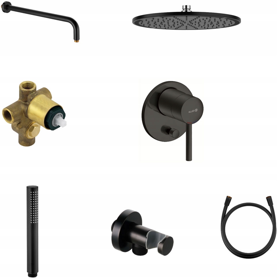 - KLUDI BOZZ podtynkowa bateria wannowo-natryskowa (z małymi rozetami); czarny mat
