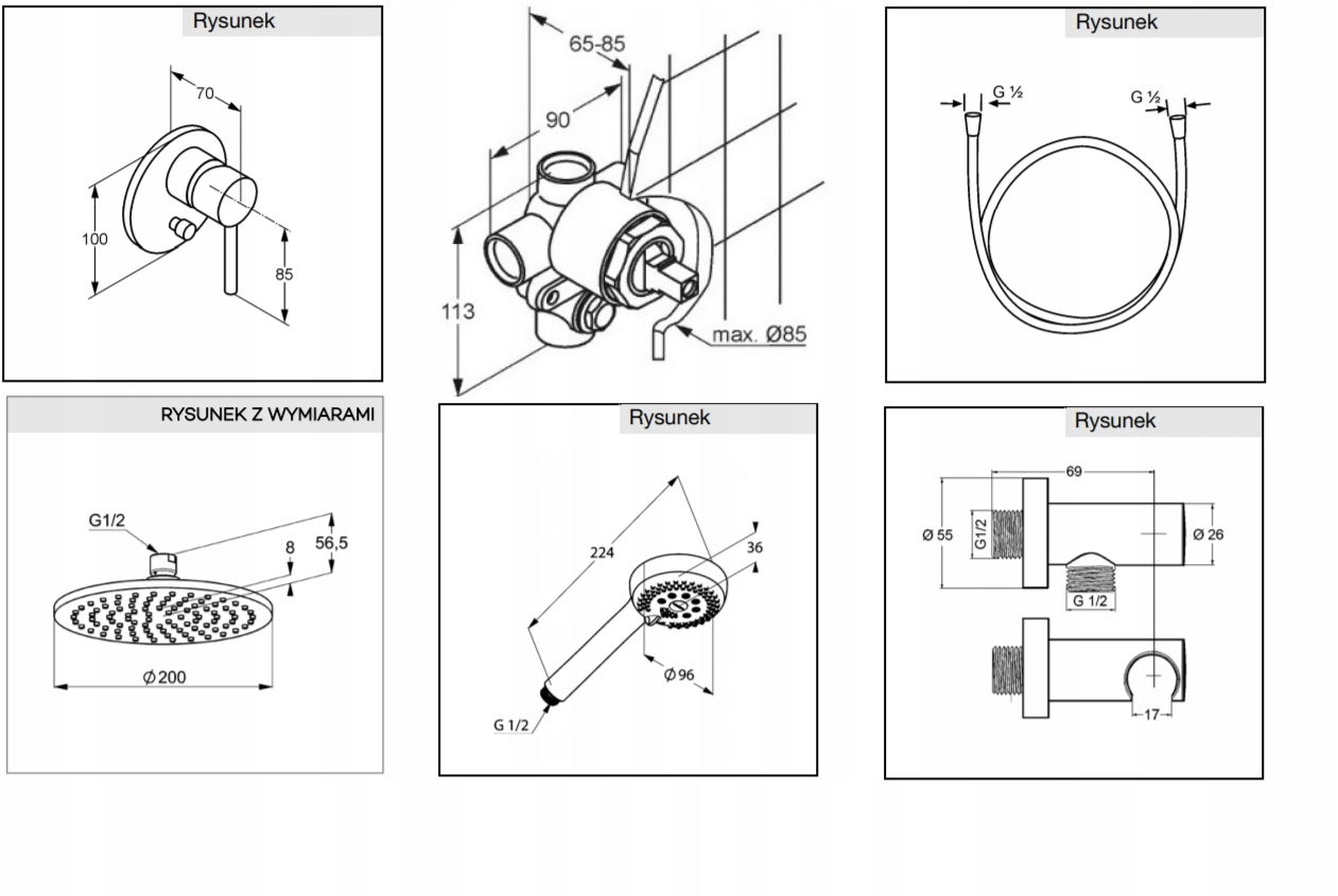 PAKIET PODTYNKOWY PRYSZNICOWY KOMPLETNY