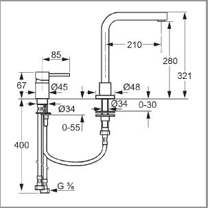 KLUDI L-INE bateria kuchenna DWUOTWOROWA