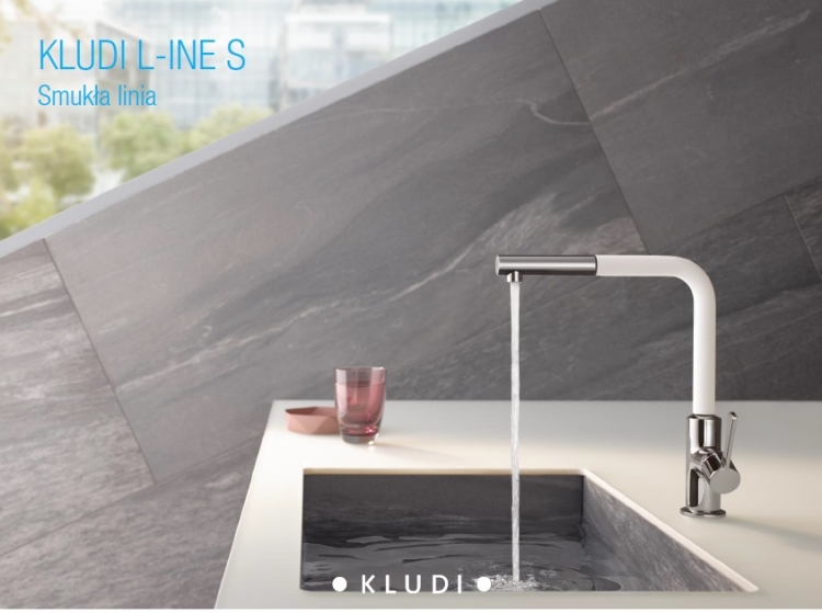 KLUDI L-INE S bateria kuchenna obrotowa, wyciągana wylewka BIAŁY /CHROM