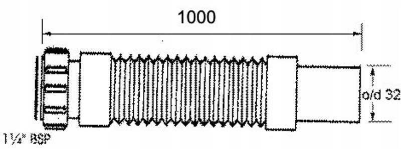 Złączka montażowa harmonijkowa, o długości 1000mm, końcówka nakrętna i prosta 1.1/4″x32mm.