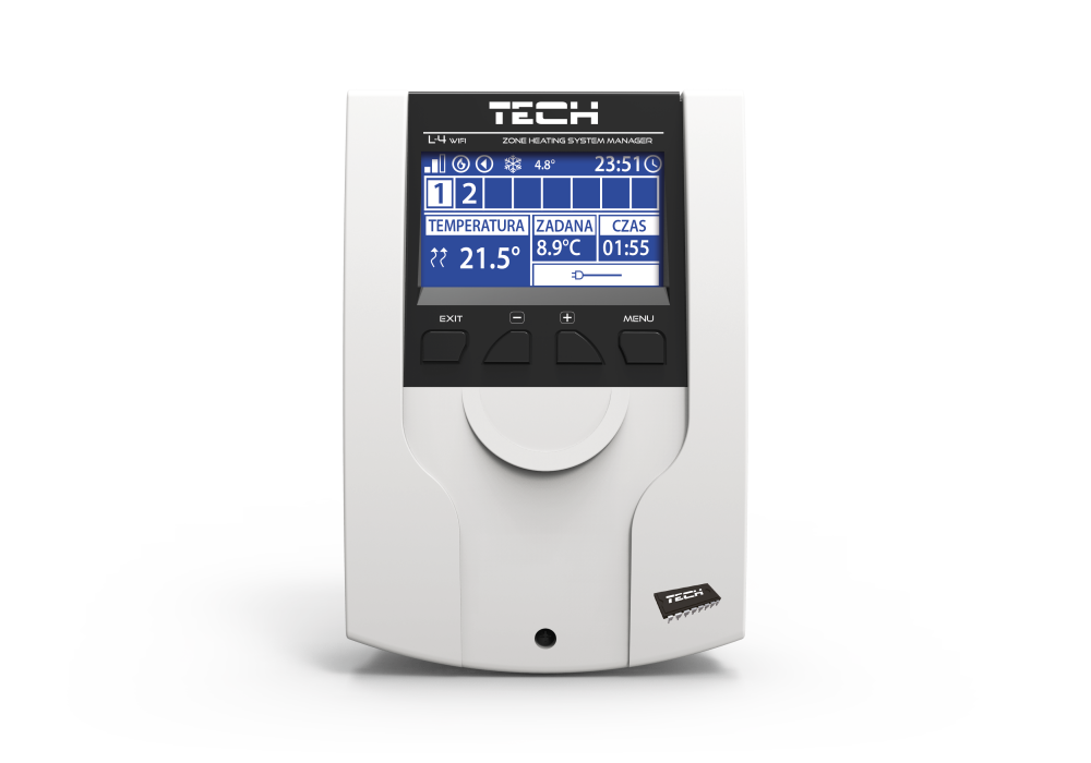 L-4 WiFi to sterownik do ogrzewania mieszanego przeznaczony do zarządzania zarówno urządzeniem grzewczym, jak i siłownikami zaworów regulującymi przepływ wody do maksymalnie 8 stref CO (4 strefy podłogowe i 4 grzejnikowe sterowane bezprzewodowo).