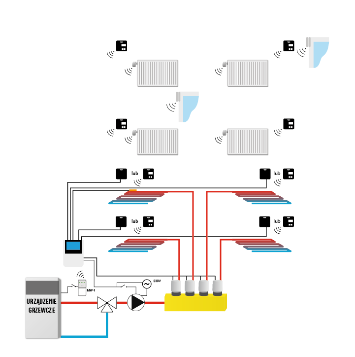 Ogrzewanie mieszane podłogowe i grzejnikowe zarządzane online