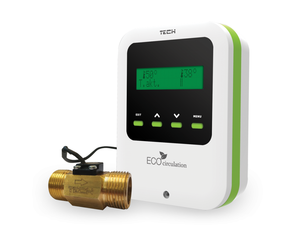 uruchamia pompę, przez co nie generuje strat cieplnych na instalacji CWU. Oszczędza energię, wodę i urządzenie pracujące w układzie (np. pompę cyrkulacyjną). Ponowna