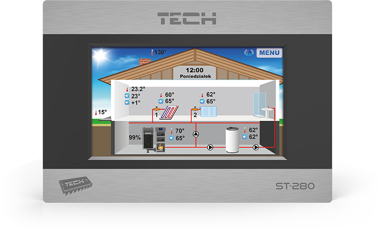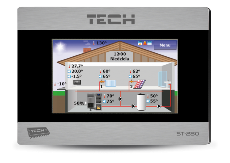 TECH ST-280 Regulator pokojowy z komunikacją RS , kolorowy, dotykowy wyświetlacz