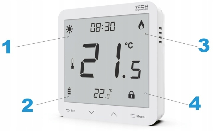 Urządzenie jest dostępne w dwóch wersjach do wyboru: przewodowej (v3) i bezprzewodowej (v2) i jest zasilane dwiema bateriami AAA 1,5V. Podobnie jak inne regulatory pokojowe firmy TECH Sterowniki jest bardzo prosty do montażu natynkowego. Wyposażony jest w styk napięciowy służący do urządzenia grzewczego lub do sterownika instalacji.