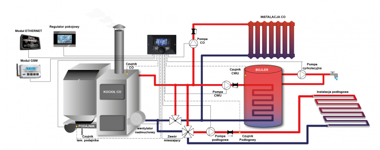 •  czujnik temperatury CWU, podłogowej