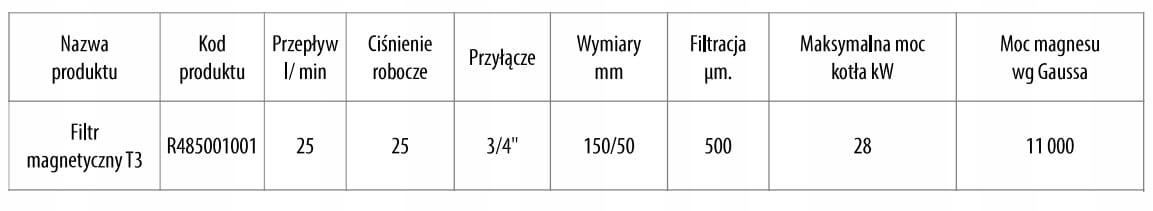 Wysokość obudowy filtra wynosząca 150 mm umożliwia łatwy dostęp do wkładu i jego wymiany. Separator posiada spust, co ułatwia drenaż oraz pozwala na dowolne wyprowadzenie wody poza instalację i to bez konieczności demontażu urządzenia. Wybierając Magnetyczny separator zanieczyszczeń do instalacji centralnego ogrzewania. Model T 3 T0000003 R485001001 Samee zyskujemy pewność, że woda krążąca w naszej instalacji jest czysta i wolna od zanieczyszczeń, co wpłynie pozytywnie na żywotność całego systemu.