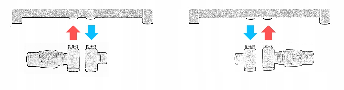 b) gdy zasilanie jest z prawej strony - wybierz zawór termostatyczny Integra prawy z rozetami pojedynczymi