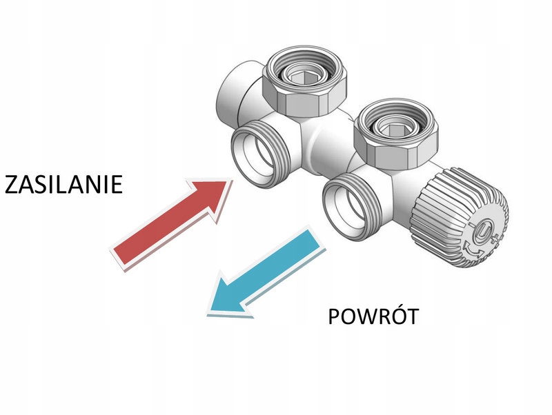WERSJA LEWA -  (czyli zasilanie z prawej strony , powrót z lewej strony od strony głowicy)
