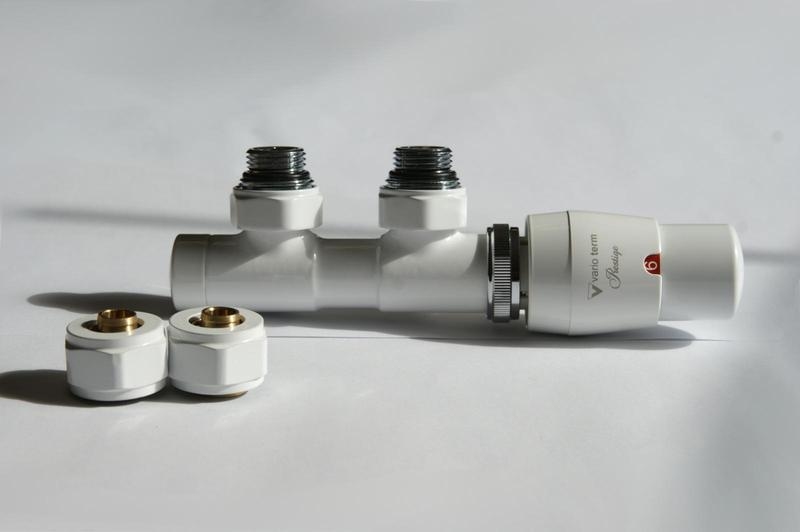 VARIOTERM zawór grzejnikowy TWINS 50mm BIAŁY MAT + złączki pex 16