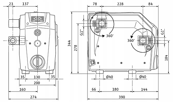 • Przełącznik do wyboru między trybem samozasysania i pracy z napływem z sieci ułatwia instalację w różnych warunkach i zastosowaniach.