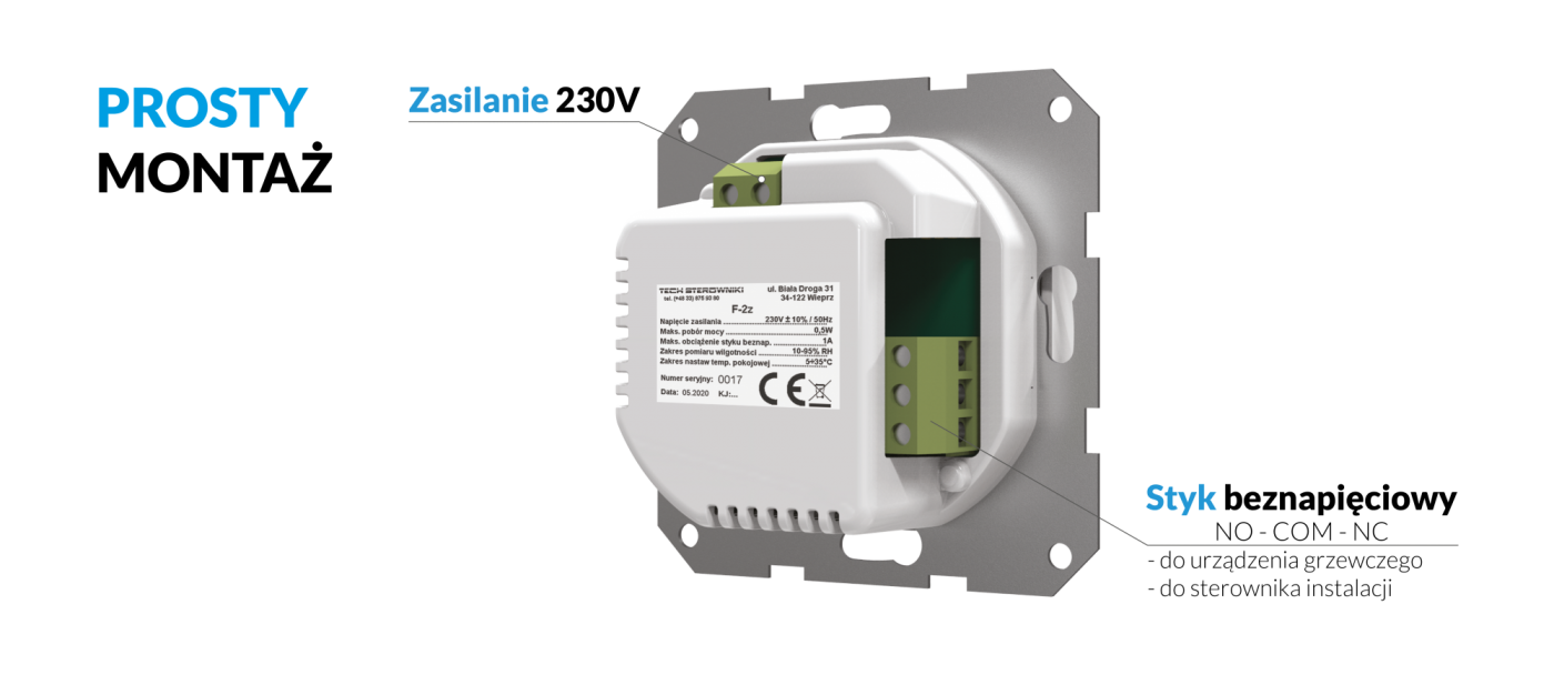 TECH F-2Z V1 przewodowy regulator pokojowy BIAŁY Marka TECH