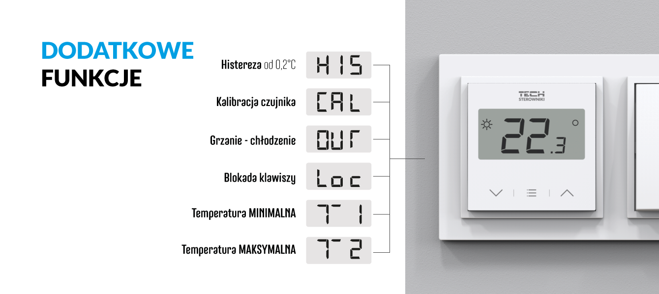 • sterowanie temperaturą pokojową +/- z dokładnością 0,1 st. C