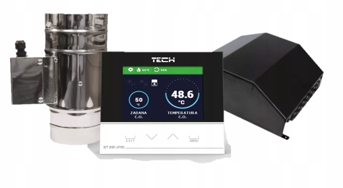 TECH ST-391 zPID sterownik kominka z płaszczem wodnym , przepustnica fi 100