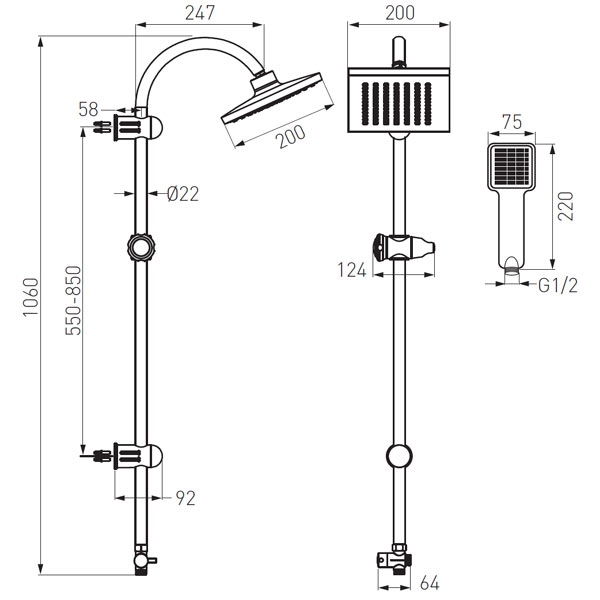 zestaw natryskowy z deszczownicą i baterią prysznicową