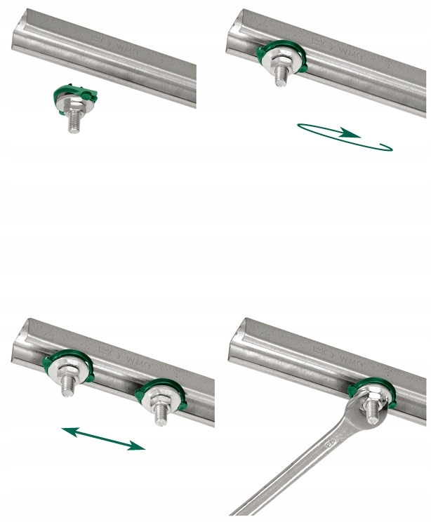 • kompletna nakrętka ślizgowa z trzpieniem gwintowanym, podkładką i sprężyną BIS RapidRail®